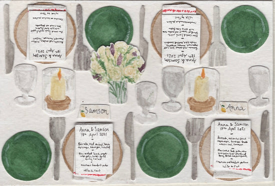 I always admire the attention to detail spent during the many months of planning a wedding and the ideas a bride and groom come up with to create a beautiful dining experience for their guests. It's a treat to recreate wedding tables in miniature, for wedding presents, anniversaries or just to encapsulate the memories and immortalise the details.