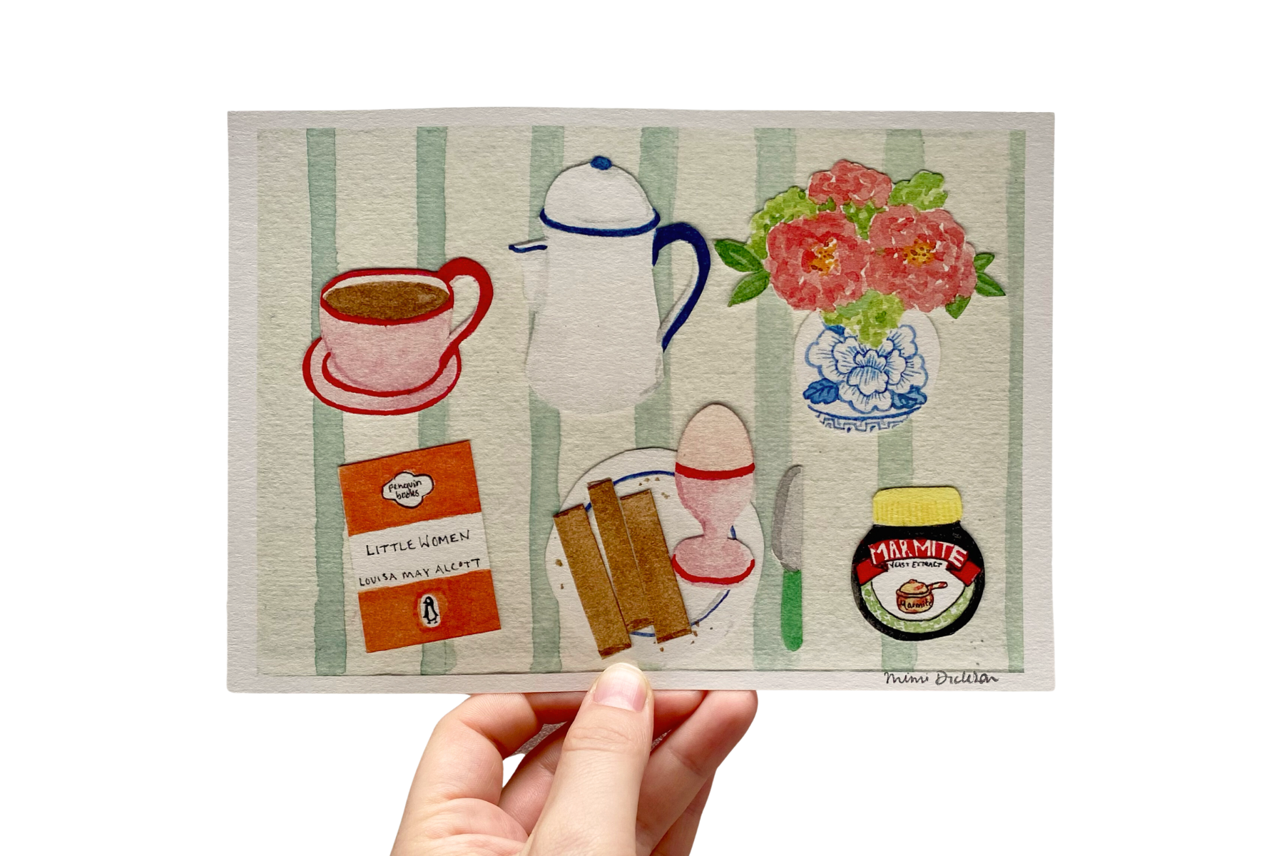 A5 signed print of an original hand painted and hand cut miniature watercolour illustration.